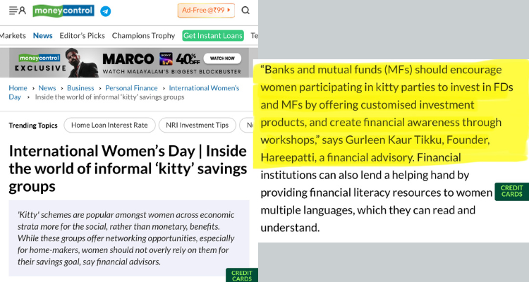 On International Women’s Day 2025, Gurleen Kaur Tikku had the privilege to share her insights in a moneycontrol.com article exploring the often-overlooked world of informal ‘Kitty’ savings groups.