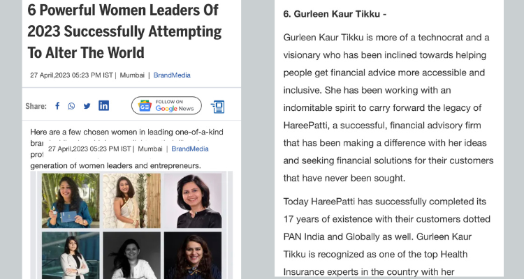 Gurleen Kaur Tikku featured among the Top 6 Powerful Women Leaders of 2023 by Mid-Day.